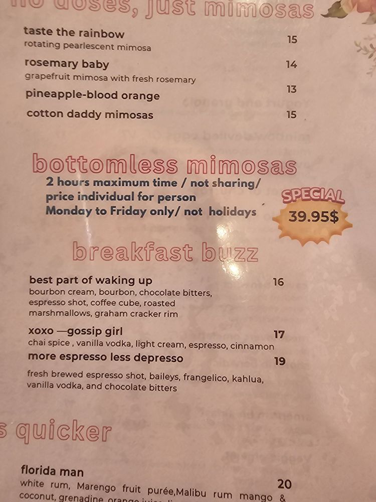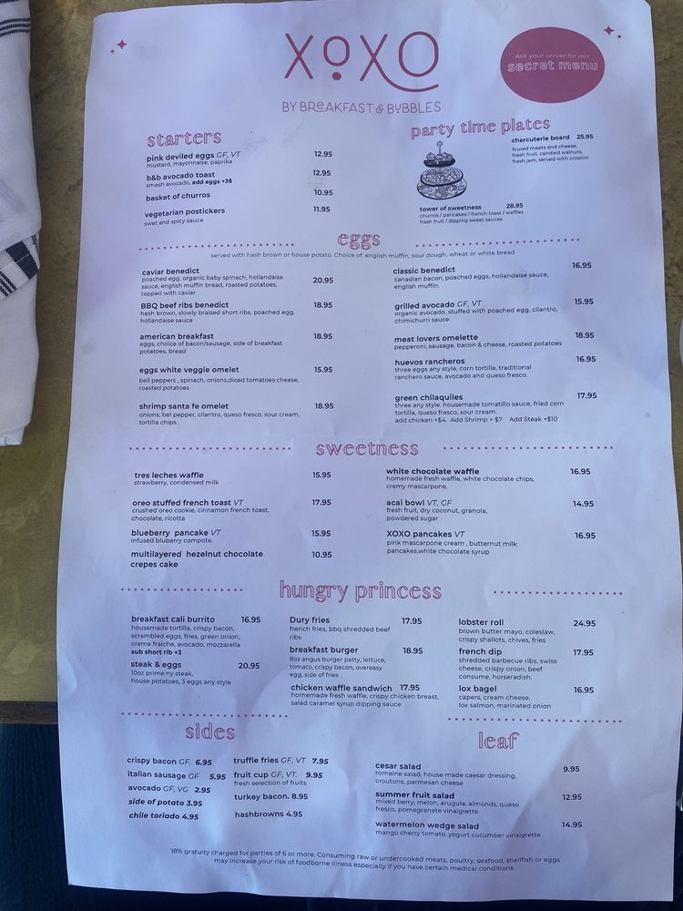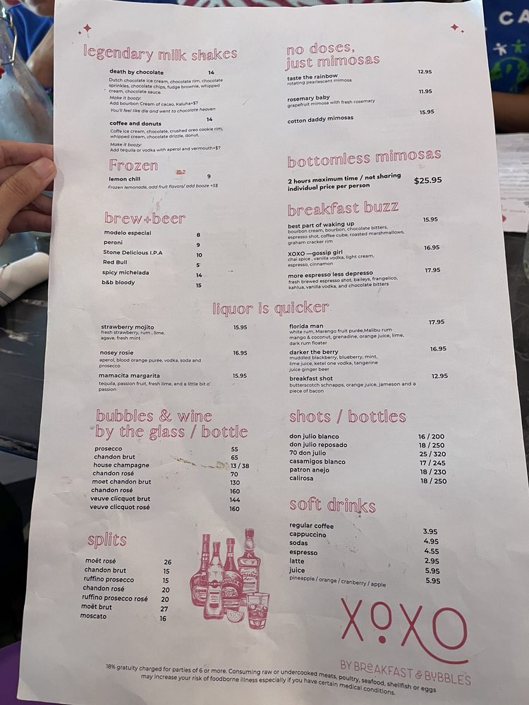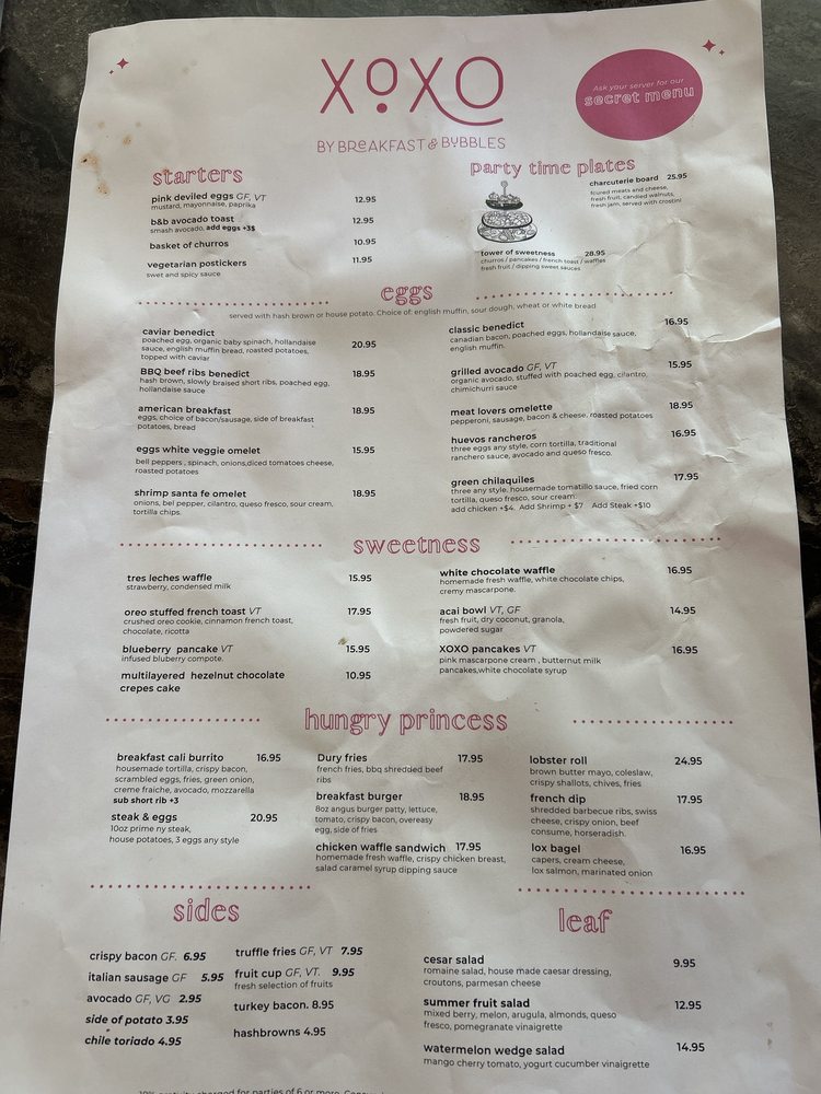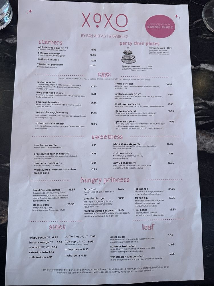 Introducing Breakfast & Bubbles, a trendy and vibrant restaurant located at 3831 Park Blvd in San Diego, CA. This hip and tourist-friendly spot offers a range of amenities such as reservations, takeout, delivery, vegan options, and more. The chic pink decor and playful atmosphere make it perfect for social media posts, while the indulgent treats like pink Espresso Martinis are a hit with customers. The menu showcases a variety of dishes with stunning presentations that are sure to impress. Whether you're looking for a fun brunch spot or a place to enjoy a cocktail with friends, Breakfast & Bubbles has something for everyone. So come on in, grab a seat at their outdoor seating area, and experience the luxury and fun that this restaurant has to offer.